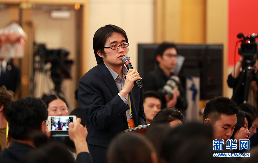 10月23日,十九大新聞中心舉辦記者招待會,邀請中央財(cái)經(jīng)領(lǐng)導(dǎo)小組辦公室副主任楊偉民,環(huán)境保護(hù)部黨組書記、部長李干杰介紹踐行綠色發(fā)展理念,建設(shè)美麗中國有關(guān)情況,并回答記者提問。圖為解放日報記者提問。新華網(wǎng) 郝廣鵬攝