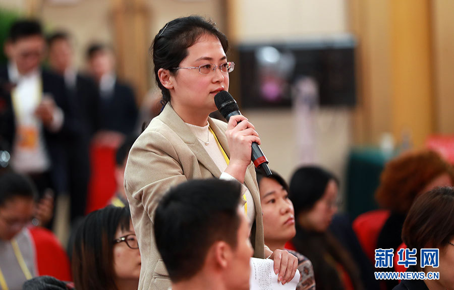 10月23日,十九大新聞中心舉辦集體采訪活動(dòng),主題為“打好生態(tài)環(huán)保攻堅(jiān)戰(zhàn)”。圖為香港紫荊雜志社記者提問。新華網(wǎng) 郝廣鵬攝