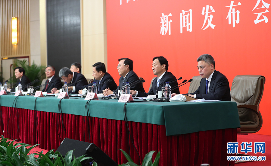 10月26日上午10:00,中國(guó)共產(chǎn)黨第十九次全國(guó)代表大會(huì)新聞發(fā)言人在梅地亞賓館二層新聞發(fā)布廳召開(kāi)專題新聞發(fā)布會(huì),請(qǐng)有關(guān)方面負(fù)責(zé)人解讀十九大報(bào)告,并回答記者關(guān)心的問(wèn)題。圖為新聞發(fā)布會(huì)現(xiàn)場(chǎng)。新華網(wǎng)?翟子赫 攝