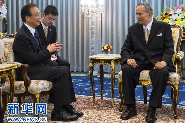 ??? 11月21日,國務院總理溫家寶在曼谷會見泰國國王普密蓬。新華社記者王曄攝