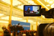 新華網(wǎng)、中國(guó)政府網(wǎng)直播工作人員在現(xiàn)場(chǎng)準(zhǔn)備就緒