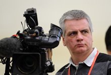 外國(guó)媒體記者在會(huì)場(chǎng)做好準(zhǔn)備
