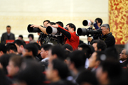 攝影記者架著“長(zhǎng)槍短炮”大顯身手