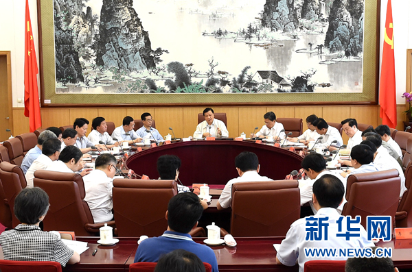??? 7月5日,中共中央政治局常委、中央黨的群眾路線教育實(shí)踐活動(dòng)領(lǐng)導(dǎo)小組組長劉云山在北京主持召開中央黨的群眾路線教育實(shí)踐活動(dòng)領(lǐng)導(dǎo)小組會(huì)議。新華社記者 劉建生 攝