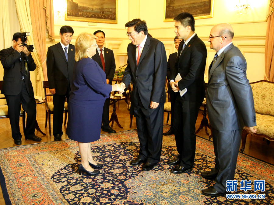 ??? 6月16日,在馬耳他首都瓦萊塔的總統(tǒng)府,郭金龍會見馬耳他總統(tǒng)普雷卡(前左一)。應(yīng)邀對馬耳他進(jìn)行友好訪問的中共中央政治局委員、北京市委書記郭金龍16日在瓦萊塔分別會見馬耳他總統(tǒng)普雷卡和總理、工黨領(lǐng)袖穆斯卡特?! ⌒氯A社記者李佳攝