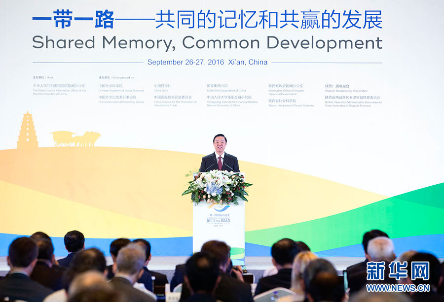 ??? 9月26日,2016“一帶一路”國際研討會(huì)在西安召開,中共中央政治局委員、中央書記處書記、中宣部部長劉奇葆出席研討會(huì),發(fā)表題為《促進(jìn)民心相通 實(shí)現(xiàn)合作共贏》的主旨演講。新華社記者 丁林 攝