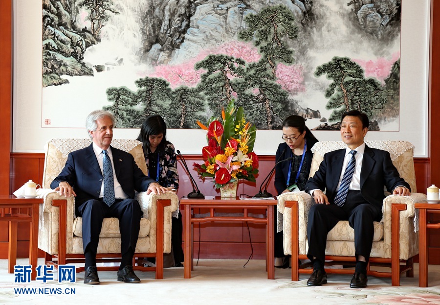 10月14日,中國(guó)國(guó)家副主席李源潮在河北唐山會(huì)見(jiàn)參加第十屆中國(guó)-拉美企業(yè)家高峰會(huì)的烏拉圭總統(tǒng)塔瓦雷·巴斯克斯。 新華社記者楊世堯攝