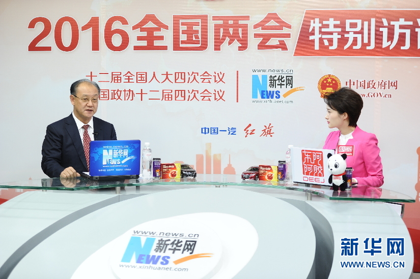 2016年3月13日,全國政協(xié)委員,中國中醫(yī)科學院廣安門醫(yī)院院長王階做客新華網(wǎng)兩會訪談直播間。圖為王階在訪談現(xiàn)場。新華網(wǎng) 盧志佳 攝