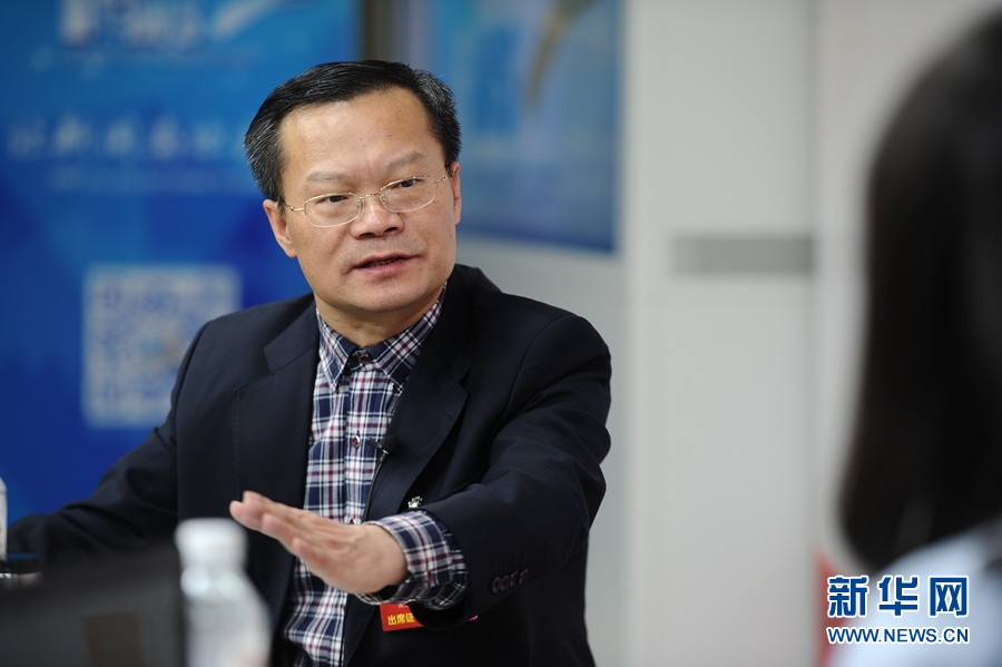 2016年3月14日,全國人大代表、湖南省益陽市委書記胡忠雄做客新華網(wǎng)兩會訪談直播間。圖為胡忠雄在回答主持人提問。新華網(wǎng) 盧志佳 攝