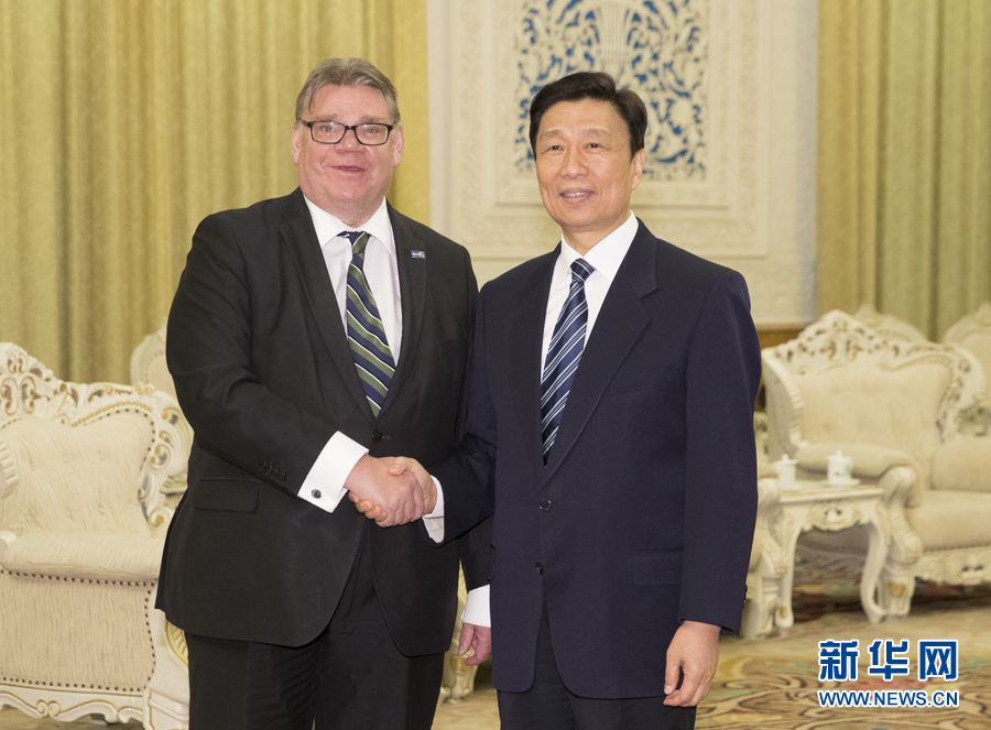 2月28日,中國國家副主席李源潮在北京會見芬蘭外交部長索伊尼。新華社記者丁林攝