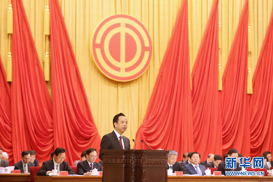 4月27日,慶?!拔逡弧眹H勞動節(jié)暨全國五一勞動獎和全國工人先鋒號表彰大會在北京人民大會堂舉行。中共中央政治局委員、中華全國總工會主席李建國出席大會并講話。新華社記者 才揚(yáng) 攝