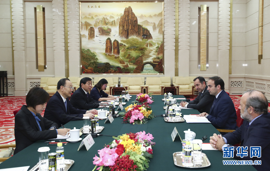 5月16日,中共中央書記處書記、全國(guó)政協(xié)副主席杜青林在北京會(huì)見(jiàn)阿根廷共和國(guó)方案黨總書記金塔納。 新華社記者 謝環(huán)馳 攝