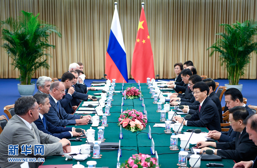 7月27日,中共中央政治局委員、中央政法委書記孟建柱在北京同俄羅斯聯(lián)邦安全會議秘書帕特魯舍夫共同主持召開中俄執(zhí)法安全合作機制第四次會議。新華社記者 張領(lǐng) 攝