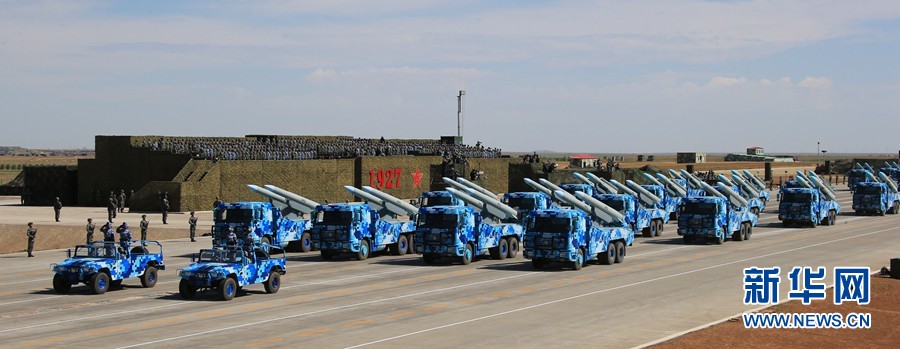 7月30日,慶祝中國人民解放軍建軍90周年閱兵在位于內(nèi)蒙古的朱日和訓(xùn)練基地舉行。中共中央總書記、國家主席、中央軍委主席習(xí)近平檢閱部隊(duì)并發(fā)表重要講話。這是海軍導(dǎo)彈第1方隊(duì)。新華社記者 查春明 攝