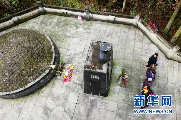 在江西蓮花縣玉壺山,龔全珍攜子女為甘祖昌將軍掃墓(4月1日攝)。新華社發(fā)
