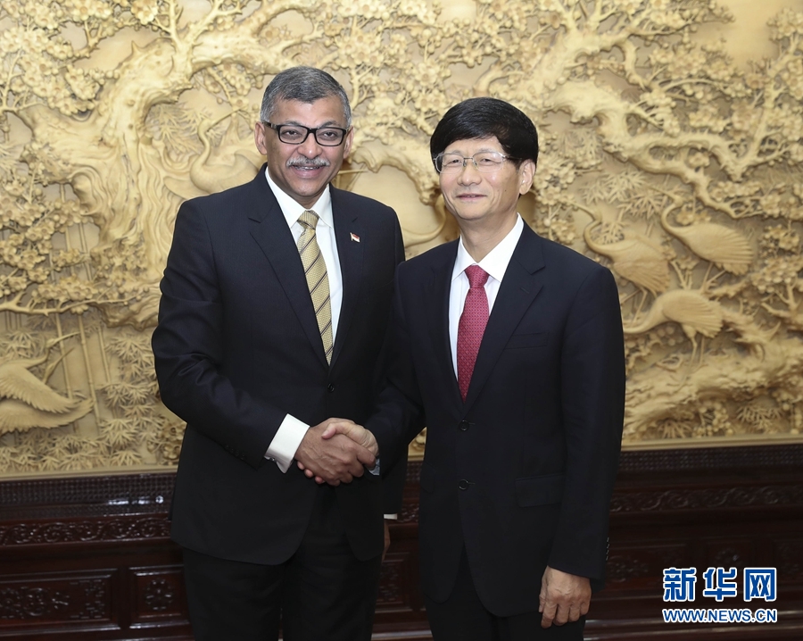 8月22日,中共中央政治局委員、中央政法委書記孟建柱在北京會見新加坡首席大法官梅達(dá)順。 新華社記者 龐興雷 攝