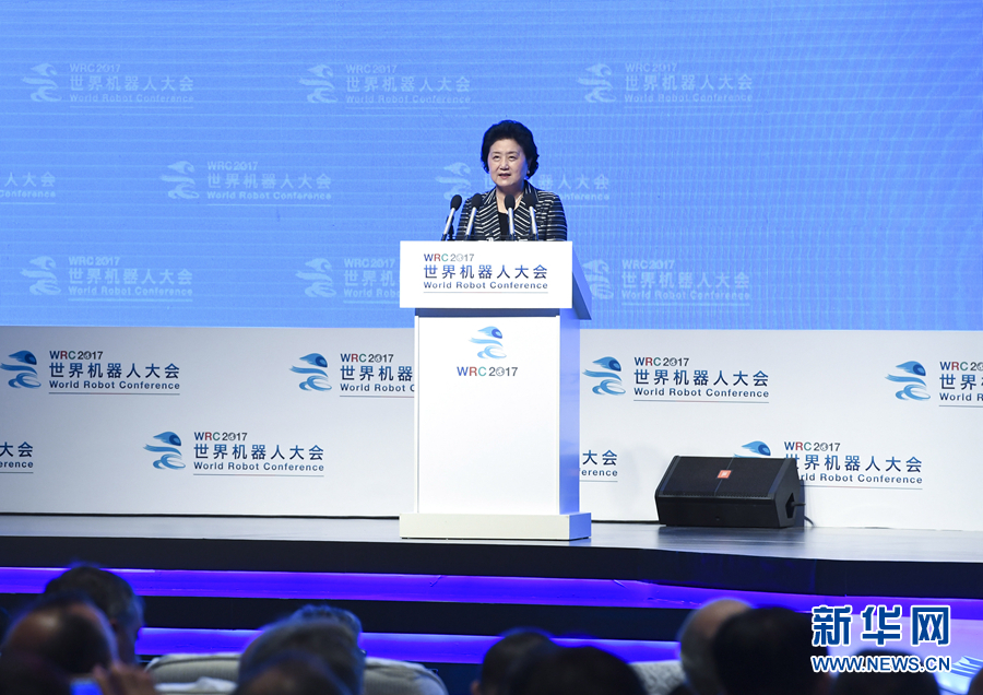 8月23日,2017世界機器人大會開幕式在北京舉行,中共中央政治局委員、國務(wù)院副總理劉延?xùn)|出席并講話。 新華社記者張領(lǐng)攝