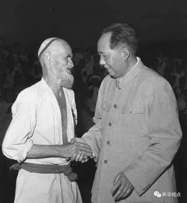 這張老照片,記錄了1958年6月28日毛澤東主席與庫(kù)爾班·吐魯木親切握手的場(chǎng)景。