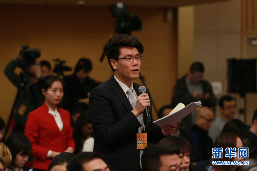 3月14日,十二屆全國(guó)人大五次會(huì)議新聞中心舉行記者會(huì),邀請(qǐng)國(guó)家質(zhì)檢總局局長(zhǎng)支樹平、副局長(zhǎng)兼國(guó)家認(rèn)證認(rèn)可監(jiān)督管理委員會(huì)主任孫大偉、國(guó)家標(biāo)準(zhǔn)化管理委員會(huì)主任田世宏就“質(zhì)量提升”的相關(guān)問題回答中外記者的提問。圖為新華社記者提問。新華網(wǎng)/中國(guó)政府網(wǎng) 傅義洲 攝?