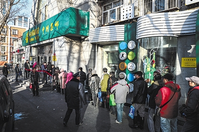 中國(guó)郵政工體北路郵政支局門(mén)口,市民排隊(duì)購(gòu)買(mǎi)郵票。