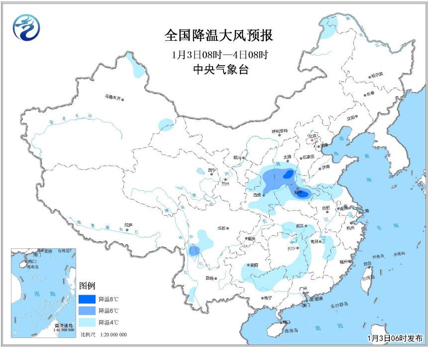張濤:氣象監(jiān)測顯示,2日11時至3日11時,甘肅南部、寧夏中南部、陜西中部、河南中部、湖北西北部出現(xiàn)小雪,局地出現(xiàn)3~4毫米的中雪,積雪深度達2~4厘米。江蘇、安徽、湖北東部、湖南、貴州等地出現(xiàn)小到中雨,云南西部和南部出現(xiàn)中到大雨。