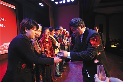 昨日(6日),故宮博物院院長單霽翔在給服務(wù)1000小時(shí)以上的故宮志愿者頒獎(jiǎng)。新京報(bào)記者 浦峰 攝