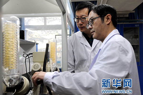 1月19日,蘭州交通大學(xué)天然藥物開發(fā)研究所教授沈彤(右)和他的學(xué)生一同進(jìn)行生物農(nóng)藥試驗(yàn)。新華社發(fā)(王銘禹 攝)