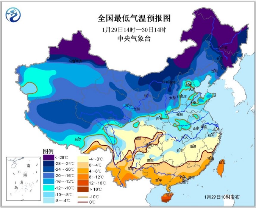 1月29日,中央氣象臺(tái)繼續(xù)發(fā)布寒潮藍(lán)色預(yù)警。根據(jù)中央氣象臺(tái)預(yù)報(bào),預(yù)計(jì)2月5日以前,影響我國(guó)的冷空氣活動(dòng)頻繁,且勢(shì)力較強(qiáng),中東部大部地區(qū)氣溫較常年同期依然偏低。