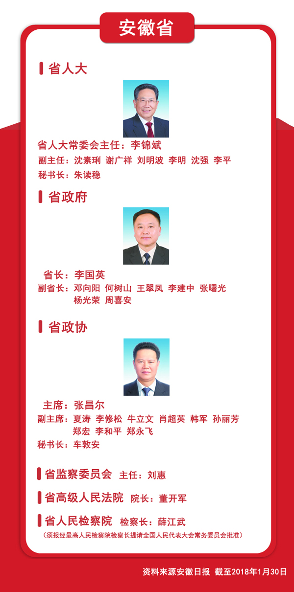 圖文速覽:31省區(qū)市新一屆人大政府政協(xié)領(lǐng)導(dǎo)班子