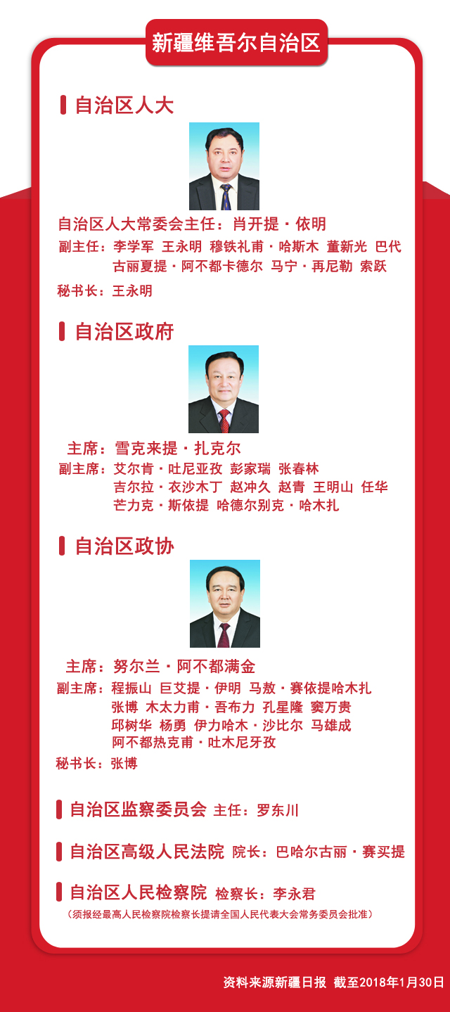 圖文速覽:31省區(qū)市新一屆人大政府政協(xié)領導班子