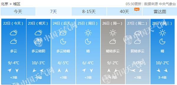 今天是春節(jié)假期后的第一個工作日,晴暖的天氣和湛藍(lán)的天空或許能給公眾帶來一份好心情。北京市氣象臺預(yù)計(jì),今天白天晴轉(zhuǎn)多云,北轉(zhuǎn)南風(fēng)三級左右,最高氣溫9℃;夜間多云轉(zhuǎn)晴,南轉(zhuǎn)北風(fēng)二三級,最低氣溫零下4℃。