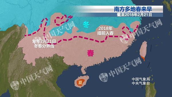 南方氣溫相對平穩(wěn),不過整體仍呈波動(dòng)上升,目前看,截至2月21日,江南南部、華南北部、四川盆地部分地區(qū)已經(jīng)成功入春,湖南中南部、江西中部都比常年同期提前見到了春姑娘。