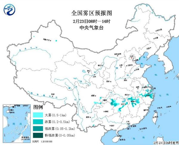 中央氣象臺(tái)今天6時(shí)繼續(xù)發(fā)布大霧黃色預(yù)警,預(yù)計(jì)今天早晨至上午,安徽南部、江蘇南部、浙江北部、江西北部、湖北東南部、湖南西北部和中部、四川盆地南部等地有大霧天氣,其中浙江北部、江西北部、湖南西北部和中部等地的部分地區(qū)有濃霧,局地能見度低于200米。