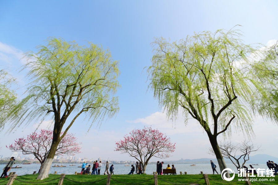 3月26日,雨后西湖再度晴歸。西湖白堤,正是桃紅柳綠時(shí)。(浙江在線(xiàn)拍友 里爾 攝)