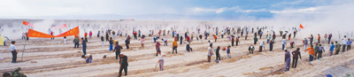 1990年3月,阿克蘇各族干部群眾在柯柯牙參加義務(wù)植樹(shù)大會(huì)戰(zhàn)。馬戰(zhàn)峰攝