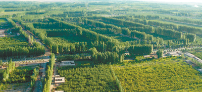 1986年,地委下定決心,在風(fēng)沙策源地柯柯牙啟動(dòng)綠化工程。30多年來(lái),克服重重困難,先后組織近210萬(wàn)人次,進(jìn)行37次綠化造林大會(huì)戰(zhàn),筑起了一條集生態(tài)林、經(jīng)濟(jì)林于一體的防風(fēng)治沙“綠色長(zhǎng)城”。亙古荒原、風(fēng)沙之源,變成了生態(tài)屏障、綠洲果園。
