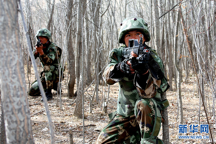 這是特戰(zhàn)隊(duì)員正在進(jìn)行紅藍(lán)對(duì)抗科目訓(xùn)練。新華網(wǎng)發(fā) 余文彬 攝