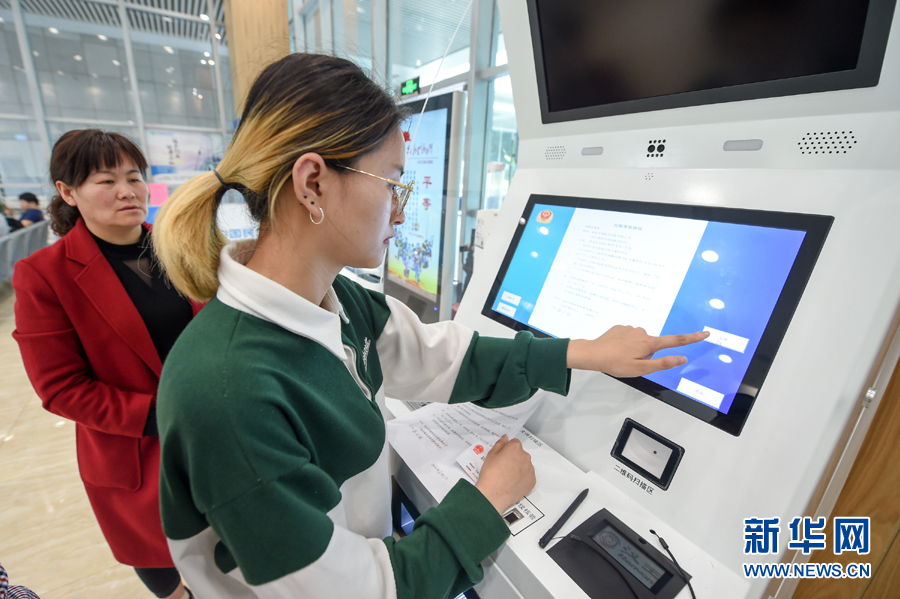 在南京市棲霞區(qū)商事登記服務大廳,市民用自動終端機辦理業(yè)務(3月29日攝)。新華社記者 李博 攝
