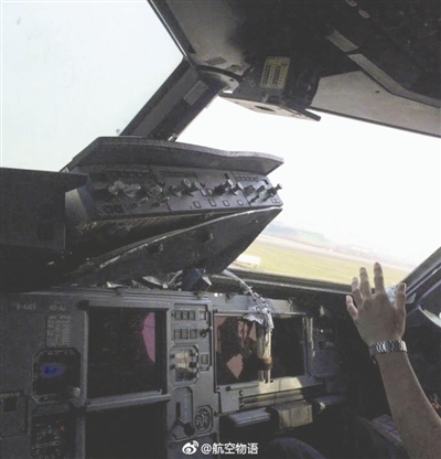 初步掌握的是飛機(jī)的前右側(cè)風(fēng)擋在空中脫落,飛行控制面板右側(cè)的三分之一在空中也脫落了