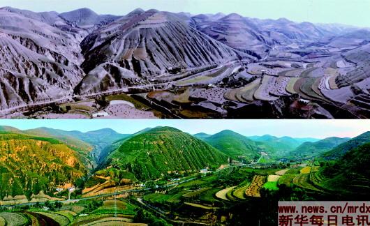 “那時候,這些山幾乎都是禿的。去山上種地,連一棵能遮陰的樹都找不到?!痹谘影彩袇瞧鹂h南溝村,53歲的閆志雄坐在被綠色環(huán)繞的自家小院中,回憶起20多年前的情形,仍不住感慨。