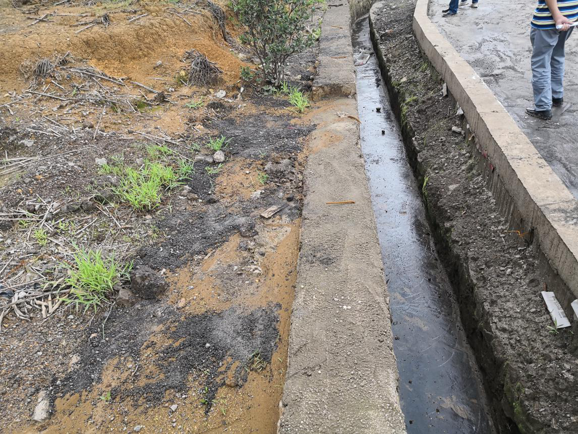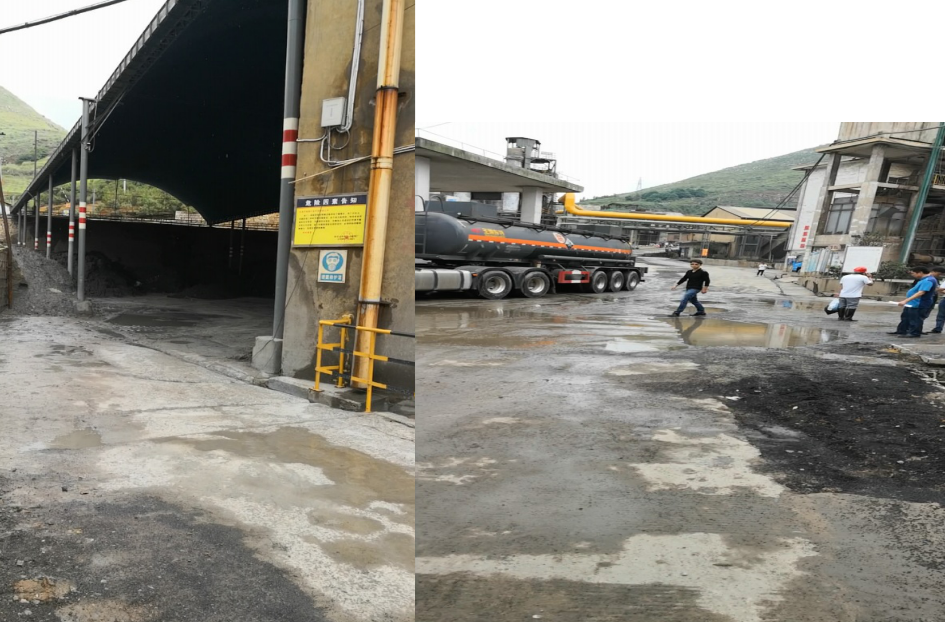 廠區(qū)沒有建設(shè)初期雨水收集系統(tǒng)?,F(xiàn)場檢查時正值雨后,地面散落的含重金屬廢渣、粉塵經(jīng)雨水沖刷進入雨水溝,最終匯入廠區(qū)低洼處。但由于收集池容積小,大量雨水混著含有重金屬的污水溢流至廠區(qū)道路,廠區(qū)污水橫流。