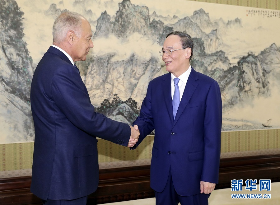 7月9日,國(guó)家副主席王岐山在北京中南海會(huì)見(jiàn)阿拉伯國(guó)家聯(lián)盟秘書長(zhǎng)蓋特。新華社記者 丁林 攝