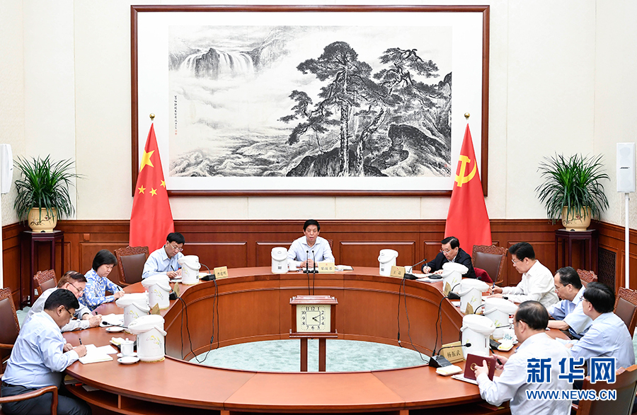 7月16日,全國人大常委會黨組在北京召開會議進(jìn)行集體學(xué)習(xí),學(xué)習(xí)習(xí)近平新時(shí)代中國特色社會主義思想,以“中國共產(chǎn)黨的歷史使命”為主題,圍繞“歷史使命、歷史責(zé)任和我們的歷史擔(dān)當(dāng)”進(jìn)行專題討論。全國人大常委會委員長、黨組書記栗戰(zhàn)書主持并講話。 新華社記者 殷博古 攝