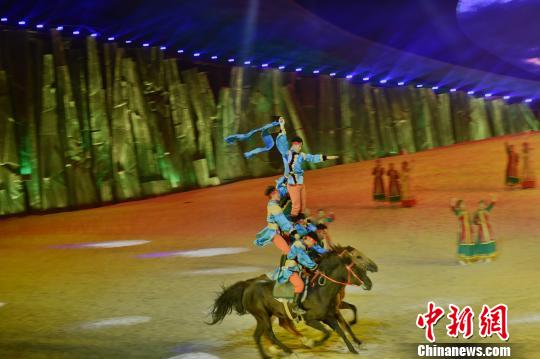 圖為《蒙古馬》實景劇演出現(xiàn)場,氣勢恢宏。翟璐 攝