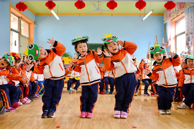 河北省邢臺(tái)市橋東區(qū)第二幼兒園的小朋友們?cè)诔獌焊?牟宇 攝