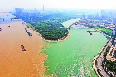 本月25日,一則視頻在網(wǎng)絡(luò)上廣泛傳播。視頻拍攝位置位于武漢市漢口龍王廟前,長(zhǎng)江與漢江交匯處。視頻中,從高空俯瞰,兩江交匯處涇渭分明,長(zhǎng)江江水顯示為黃色,漢江江水則偏綠,分界明顯。被網(wǎng)友戲稱為武漢黃綠“鴛鴦鍋”。