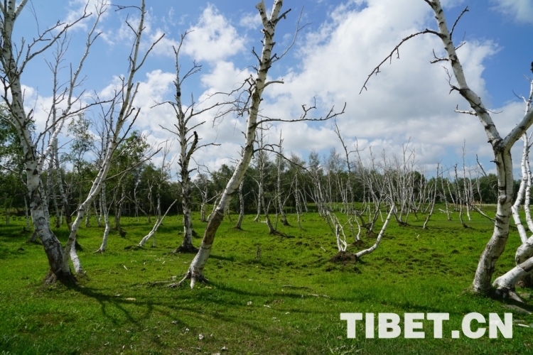 草原上的白樺林難得一覓。在距西烏珠穆沁旗高勒鎮(zhèn)五十公里處的公路兩旁,獨有一片白樺佇立在蒼茫天地間,白色枝干直刺蒼穹,好似一群勇士,守護著這片遼闊的土地。