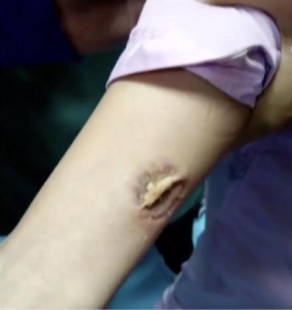 記者來到醫(yī)院看到劉珊時(shí),事情已經(jīng)過去了十天,被咬的傷口已慢慢恢復(fù),但是依然清晰可見被咬的痕跡。而患者病情好轉(zhuǎn),已經(jīng)轉(zhuǎn)到普通病房接受進(jìn)一步治療。