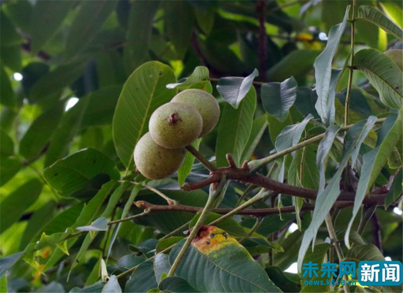 崇仁村長勢(shì)喜人的核桃樹已掛果。未來網(wǎng)記者 程婷 攝