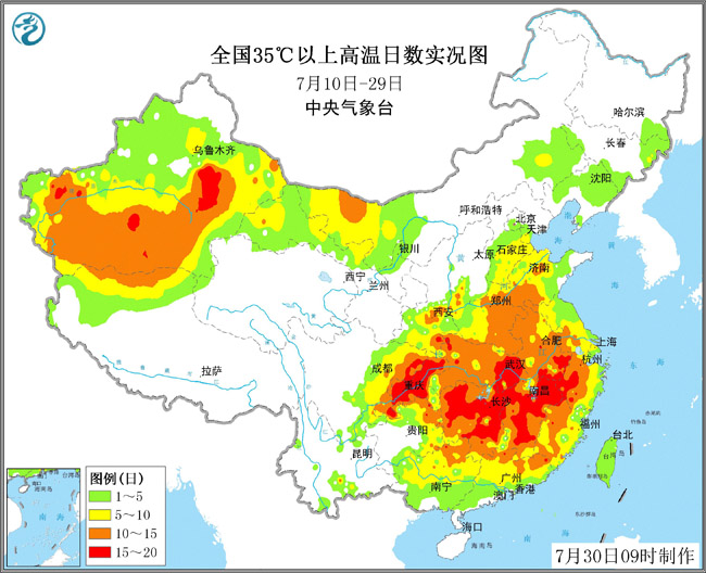 孫軍:7月10日以來,我國中東部地區(qū)出現(xiàn)大范圍持續(xù)性高溫天氣,四川盆地、江南、華南以及黃淮、江淮、江漢、華北東部和南部、東北南部均有影響。其中重慶、湖北、湖南、江西、安徽、浙江中西部等地35℃以上高溫日數(shù)達(dá)10~18天。